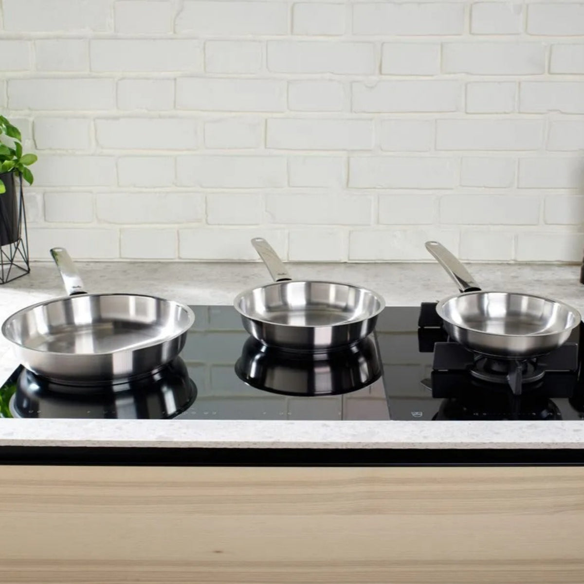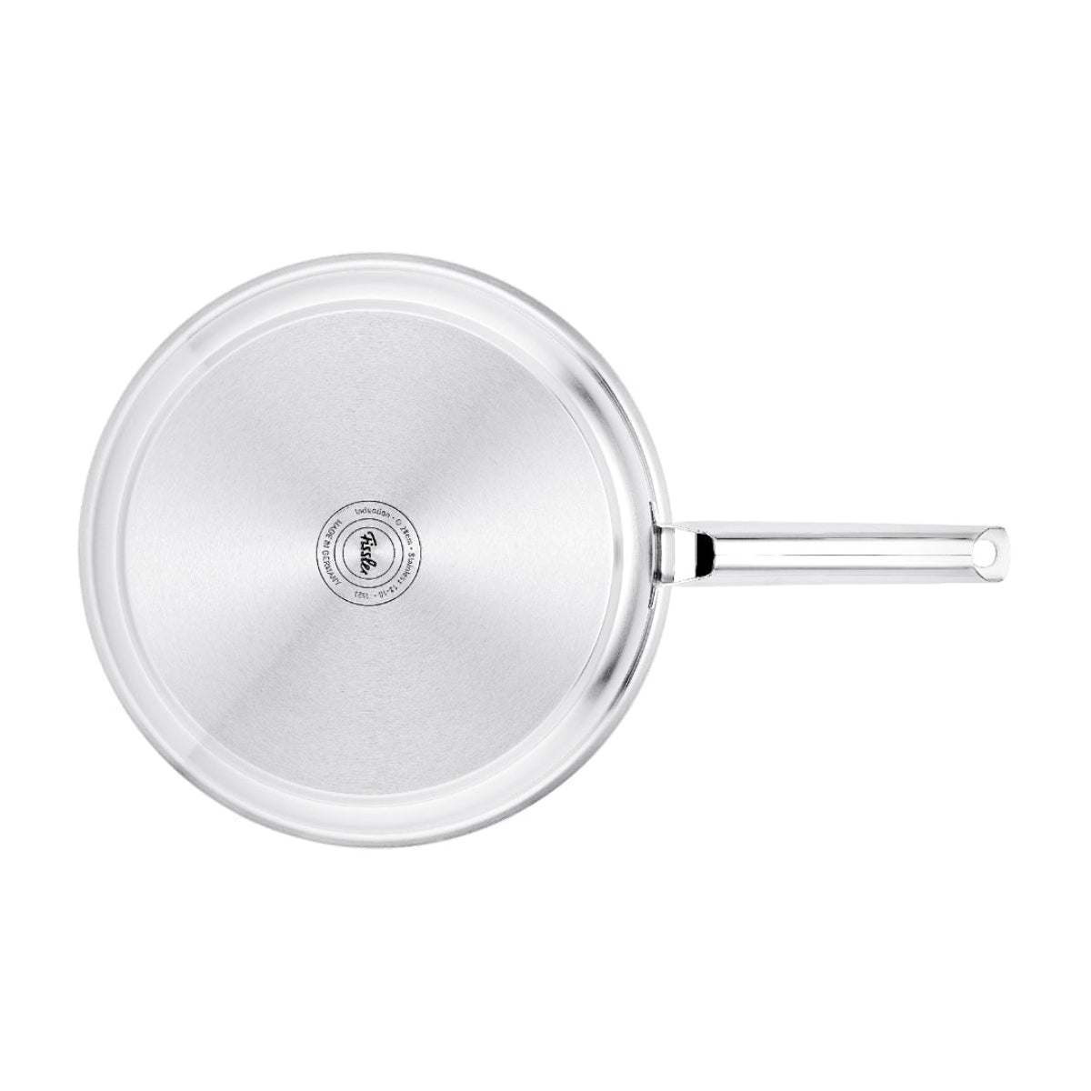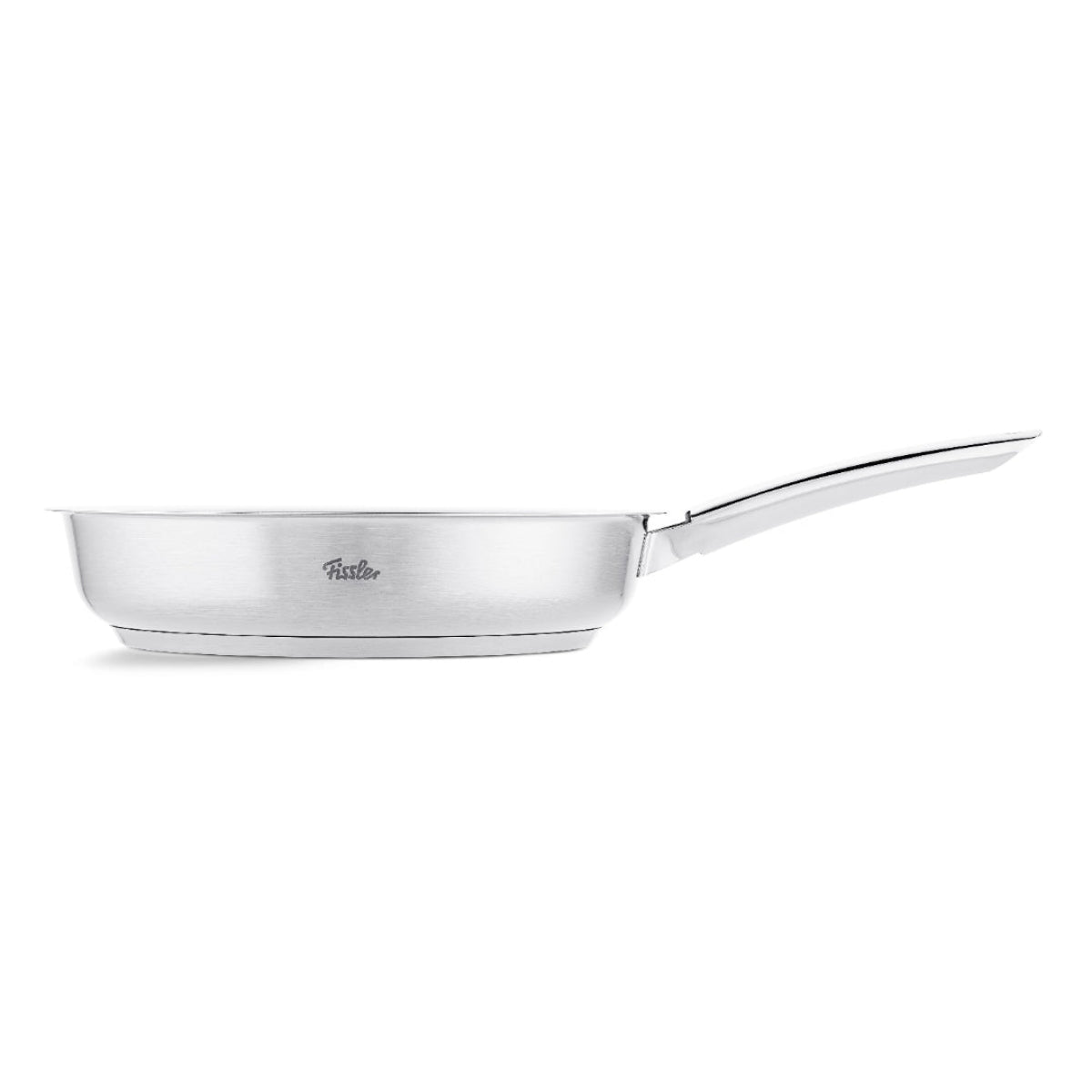 The Fissler Pure Collection caters to aspiring home chefs and families seeking durable Fissler quality, proudly 'Made in Germany’ at an accessible price point. Crafted sustainably using up to 90% recycled 18/10 stainless steel, the Fissler PURE Collection stands as a reliable companion for every day kitchen needs. Designed for versatility, the Fissler Pure Collection’s frying pan is perfect for achieving a crispy, low-fat finish when searing meats, vegetables, and seafood. Its body features a long handle for a safe hold, an extra-high rim, and a generously sized frying surface for effortless, mess-free stirring and turning. The rivet-free construction prevents food residue from sticking to that area, making clean-up a breeze. The Fissler Pure Collection's Superthermic base ensures uniform heat distribution on all stovetops, including induction. Oven-safe up to 230°C (and 180°C with glass lids), the frying pans may be easily cleaned in the dishwasher for added convenience.