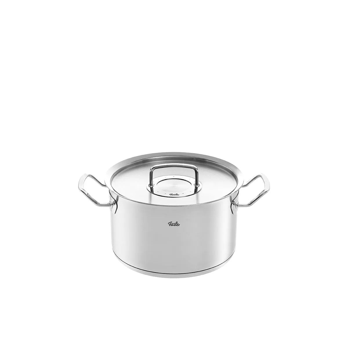 - Fissler Premium pot body made of robust 18/10 stainless steel with ergonomic handles, extra wide pouring rim for easy, precise and spill-free pouring and transferring of liquids